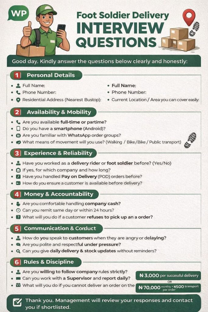 FOOT SOLDIER DELIVERY INTERVIEW QUESTIONS